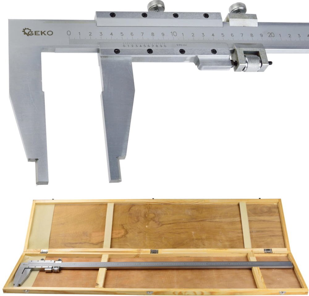 Posuvné měřítko, šuplera 1000 mm Kvalitní posuvné měřítko, šuplera s rozsahem měření 1000 mm. Opatrené knoflíkem a vodícím šoupátkem pro jemné nastavení. Perfektní pro průmysl, obrábění kovů, zpracování dřeva. Technické údaje:Celková délka: 1233 mmCelková šířka: 162 mmPřesnost měření: 0,02mm
