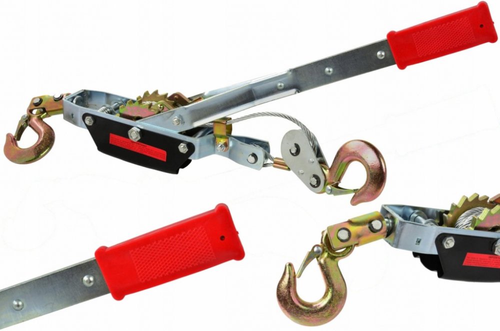 Ruční horizontální lanový naviják. Naviják je vybaven 2-režimovým uzamykacím mechanismem, ocelovou linkou o průměru 6 mm a délce 2,5 m, což v kombinaci s odolnými háky generuje tažnou sílu na úrovni 4000 kg.
