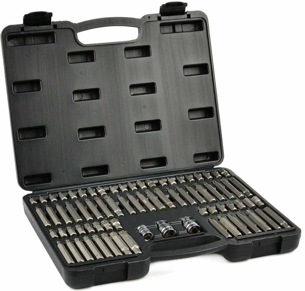 Sada bitů imbus torx spline 75ks. (5)Sada bitů vyrobená z oceli CrV, sloužící k odšroubování speciálních šroubů typu: torx, spline, hex ribe. Díky velké rozmanitosti bitů se tato sada perfektně hodí do profesionálních servisů a autoservisů. Ověřeno zákazníky