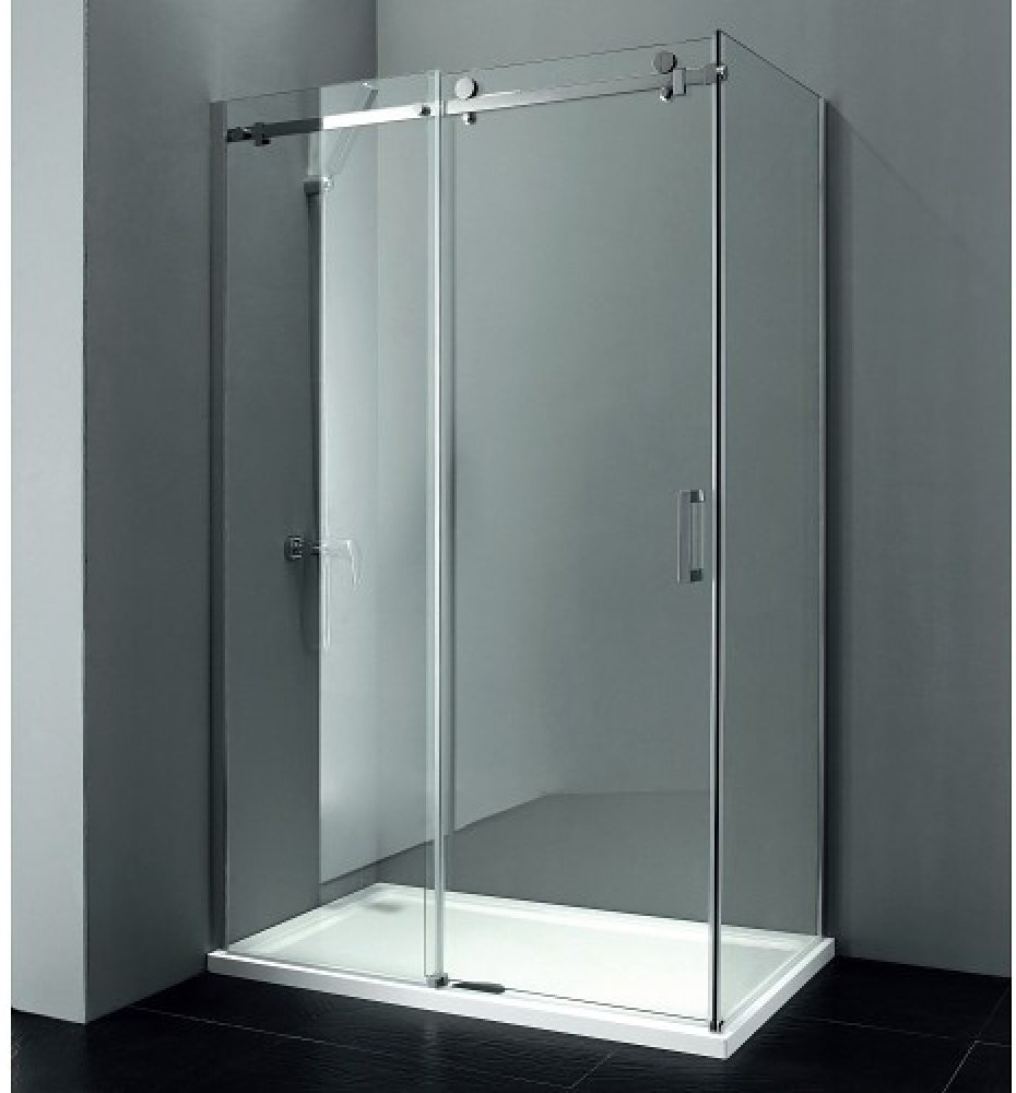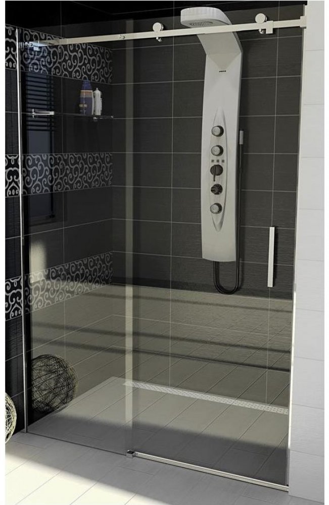 Dveře z bezpečnostního skla jsou zavěšeny a jejich pohyb usměrňuje vodící díl na podlaze. Posuvné zástěny Dragon tak umožňují bezbariérový vstup.