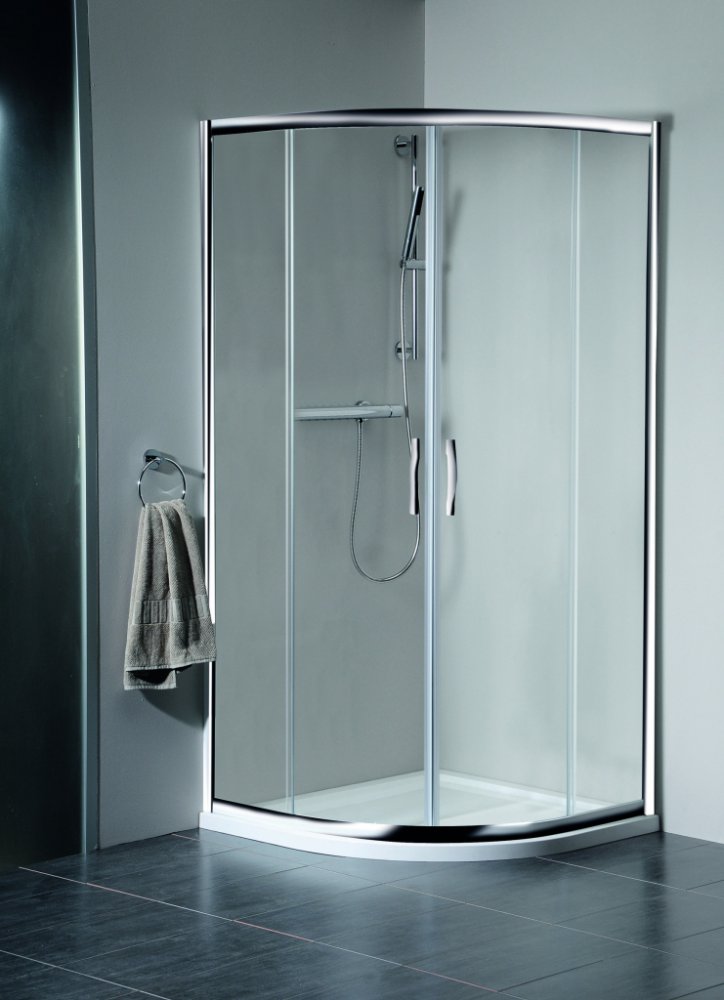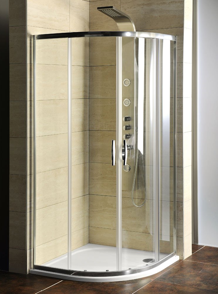 - čtvrtkruhová zástěna s dvoudílnými posuvnými dveřmi