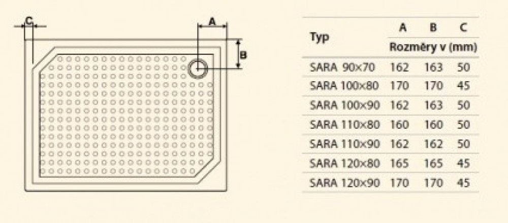 - Hloubka vaničky je 2 cm