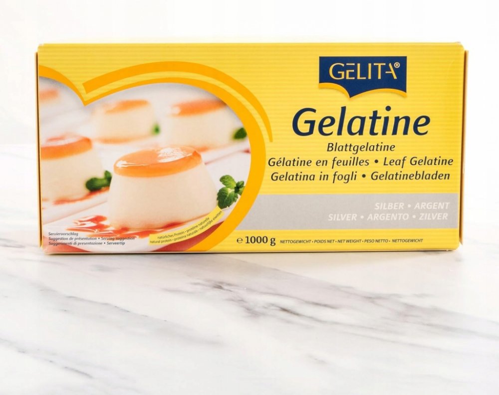 Víceúčelová potravinářská želatina v listech Silver Gelita 1000 g 180 bl. Tyto želatinové listy (bez zápachu, bez chuti a bezbarvé) jsou široce používány v pečení a cukrářských výrobcích pro mnoho účelů, jako je želatinování tvarovaných dezertů a salátů, zahušťování studených polévek a glazurovacích přípravků.Využijte tuto želatinu k přípravě chutných koláčů, krémů, omáček nebo pudinků. Její výjimečné vlastnosti zajistí, že vaše pečivo bude mít ideální konzistenci. Navíc je želatina v lístcích 1000 g vhodná pro osoby s různými dietními preferencemi, protože neobsahuje umělé přísady ani lepek.