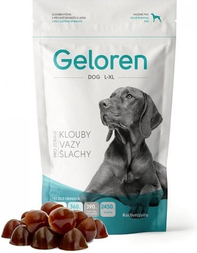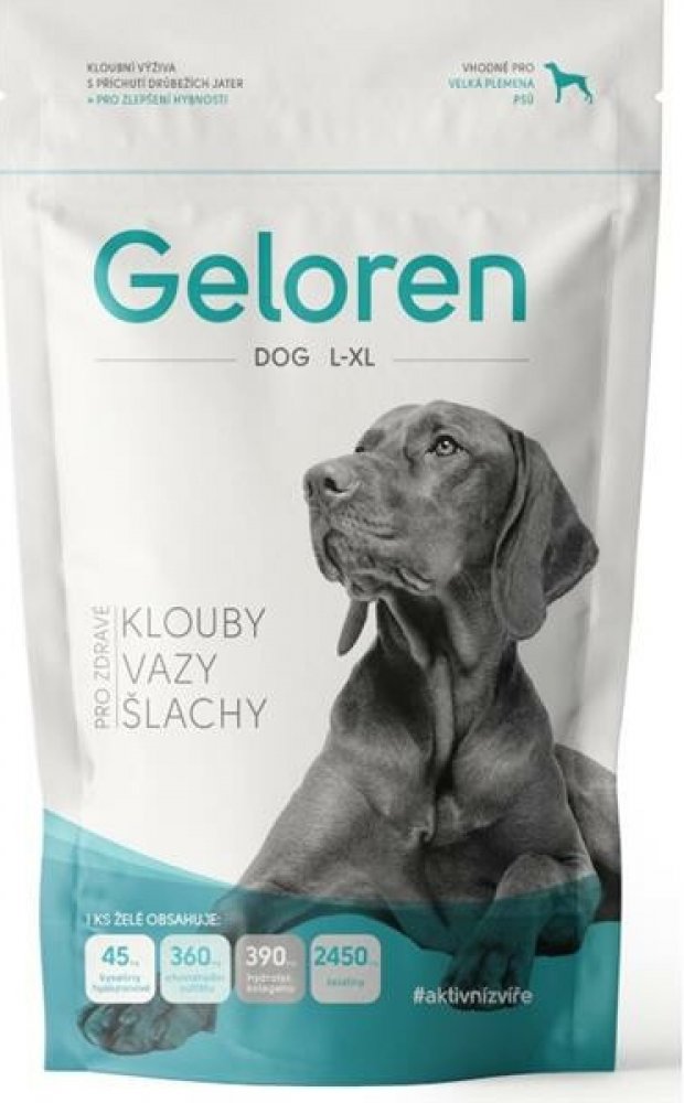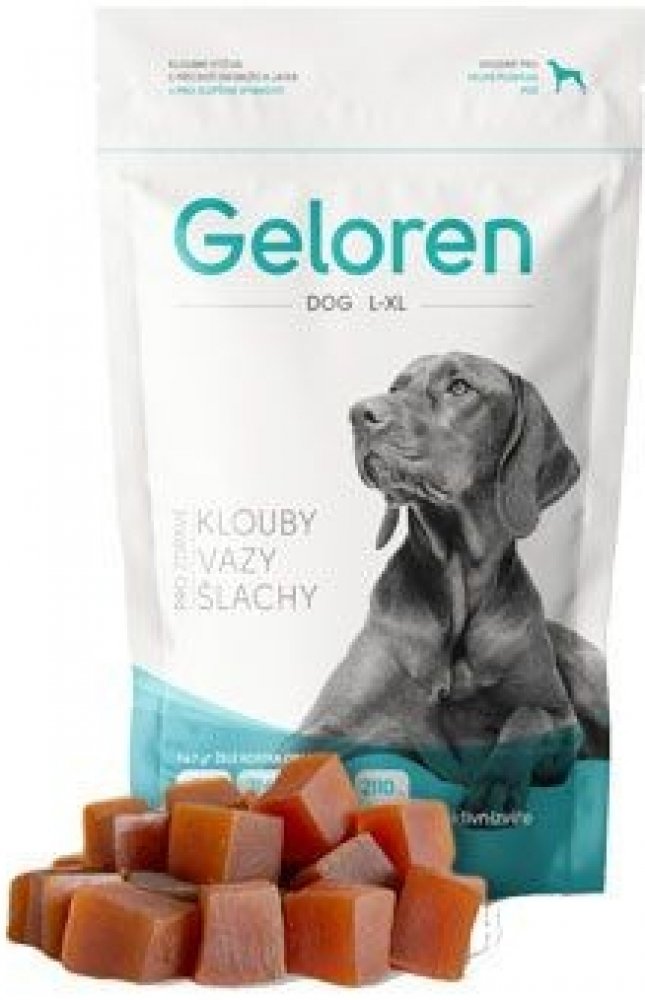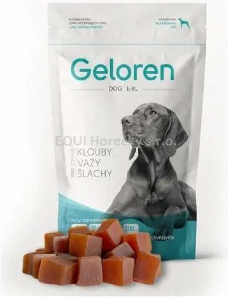 Geloren DOG L-XL ve formě ochucených žvýkacích kostek je speciálně určený pro velká plemena psů. Podporuje regeneraci kloubů při různých pohybových problémech a slouží také jako prevence k prodloužení aktivního života psa.