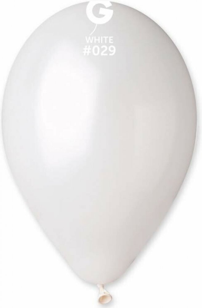 Kulaté nafukovací balónky GM90 26cm / 10"#029 bílá metalická barva.