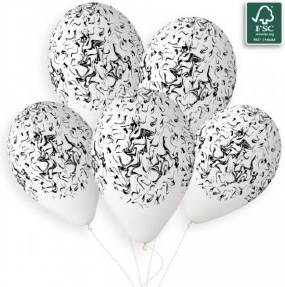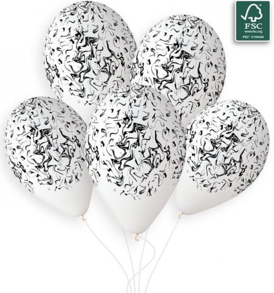 50ks bílých balónků s potiskem černého mramoru o průměru 33cm. Balóny Gemar jsou vyráběny výhradně v Itálii v souladu s národními a evropskými předpisy.