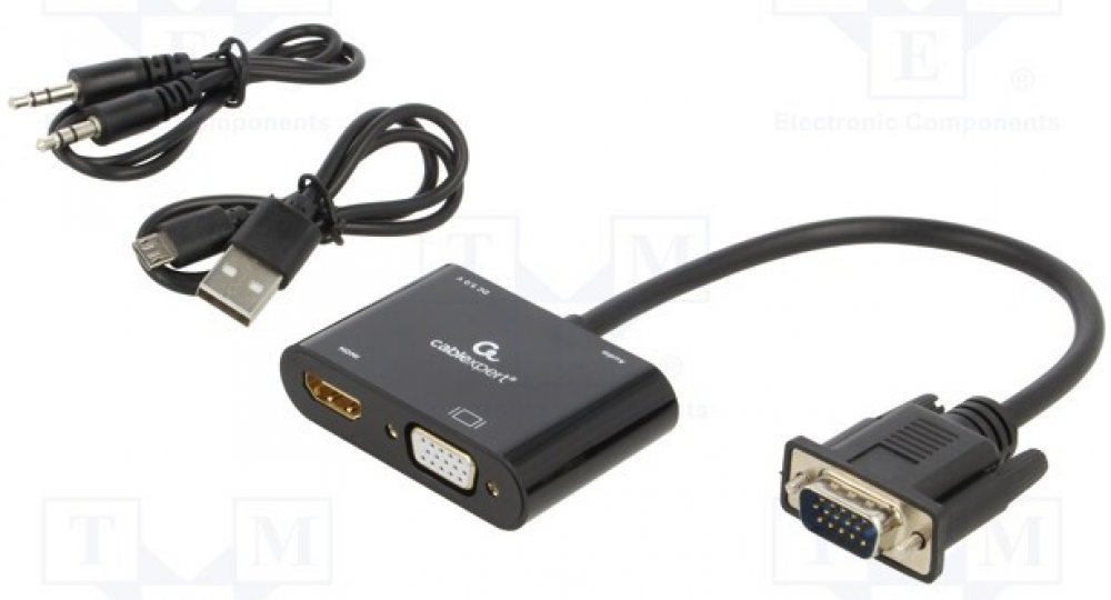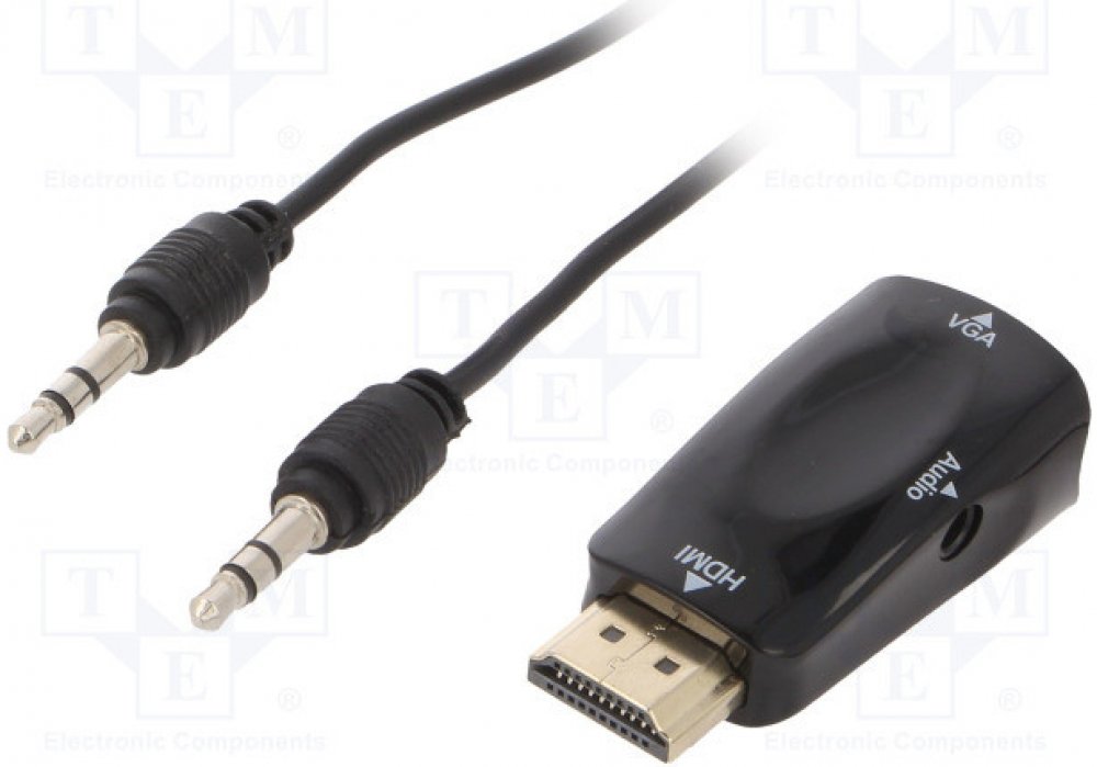 * Converts digital HDMI input into analog VGA output + 3.5 mm audio