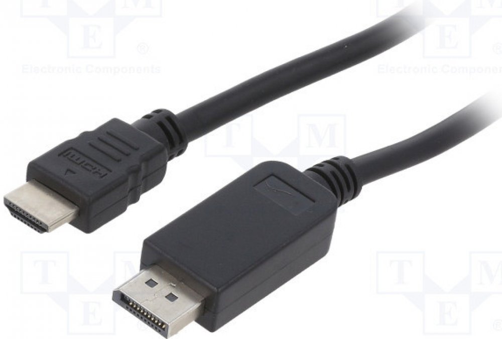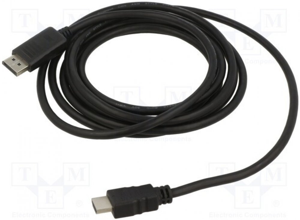 Kabel DisplayPort (samec) na HDMI (samec typu A) Jednosměrný kabel převádí signál z vysílače DisplayPort na přijímač HDMI Převod čipové sady IC Barva: Černá