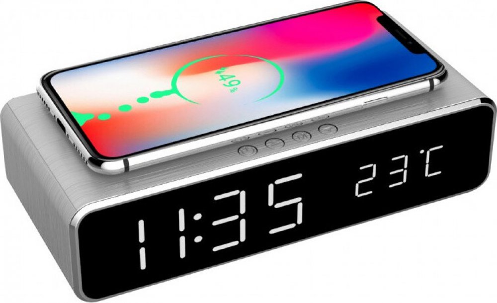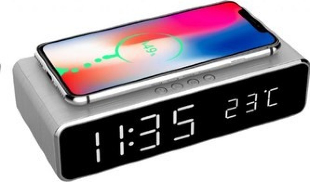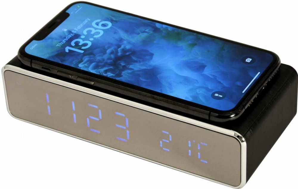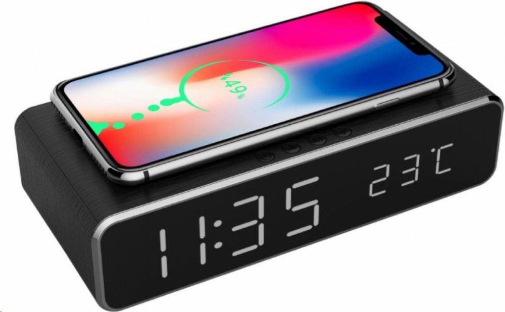- Digitálny budík s funkciou bezdrôtového nabíjania