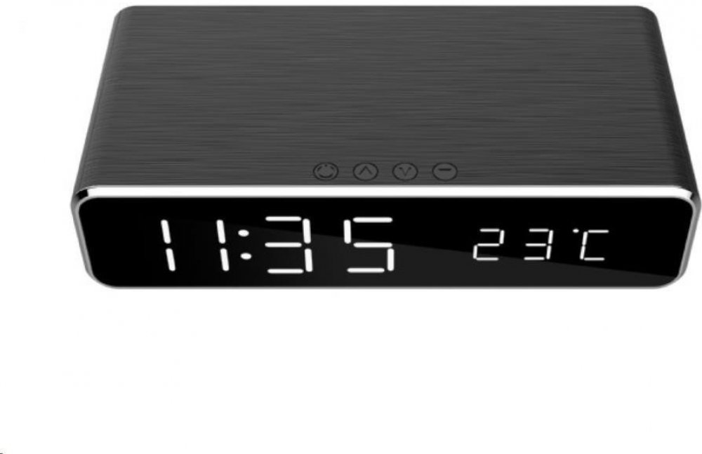 Digitálny budík s funkciou bezdrôtového nabíjania, čierny