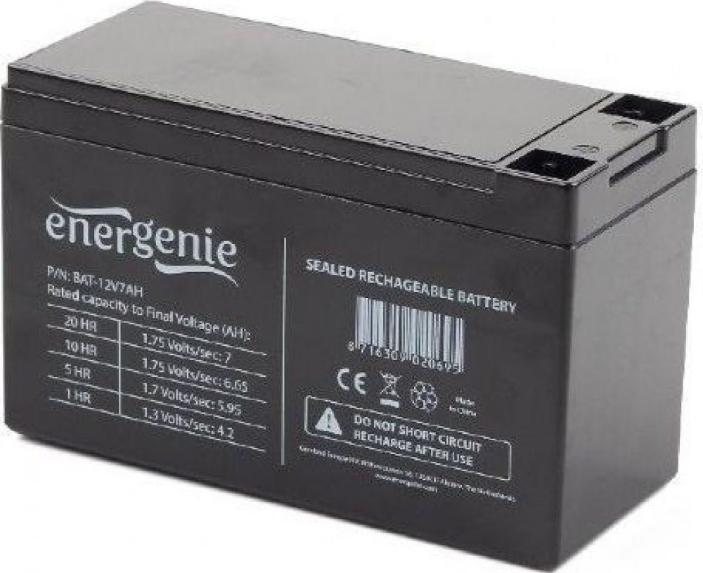 Jedná se o baterii standardizovaných rozměrů, která je mimo záložních zdrojů vhodná také například do elktrických sekaček, zabezpeřovacích systémů a dalších. Battery 12V 7AH for UPS Nominal voltage (V): 12 Rated capacity to Final Voltage (AH): 20HR, 1.75 Volts/sec: 7 10HR, 1.75 Volts/sec: 6.65 5HR, 1.7 Volts/sec: 5.95 1HR, 1.3 Volts/sec: 4.2 Dimensions (mm): Length: 151 Width: 65 Height: 95 Height incl. terminal: 101 Approx. Weight (kg): 2.7 Na baterii či akumulátor, které mohou být součástí produktu, se vztahuje doba životnosti v délce šesti měsíců, protože se jedná o spotřební materiál.