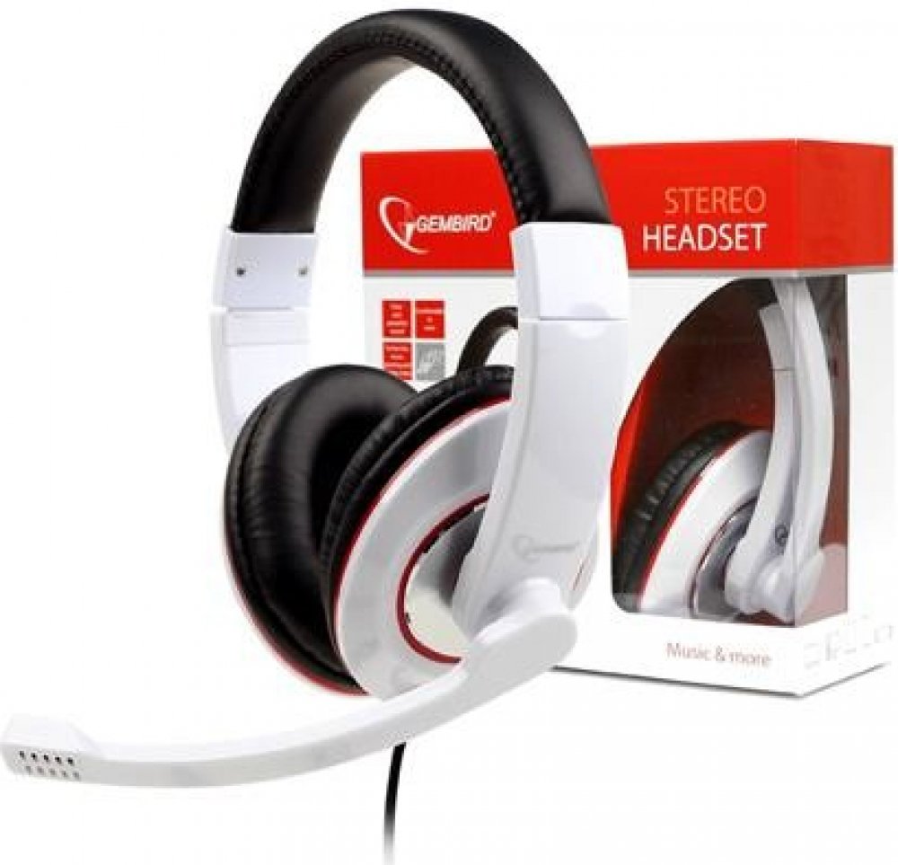 kabelová 100 mW 32 Ohm Binaurální circumaurální herní 20000 Hz 20 Hz Gembird 105 dB/mW přes hlavu (náhlavní) 3,5 mm Jack uzavřená bílá 180 cm 200 g 40 mm