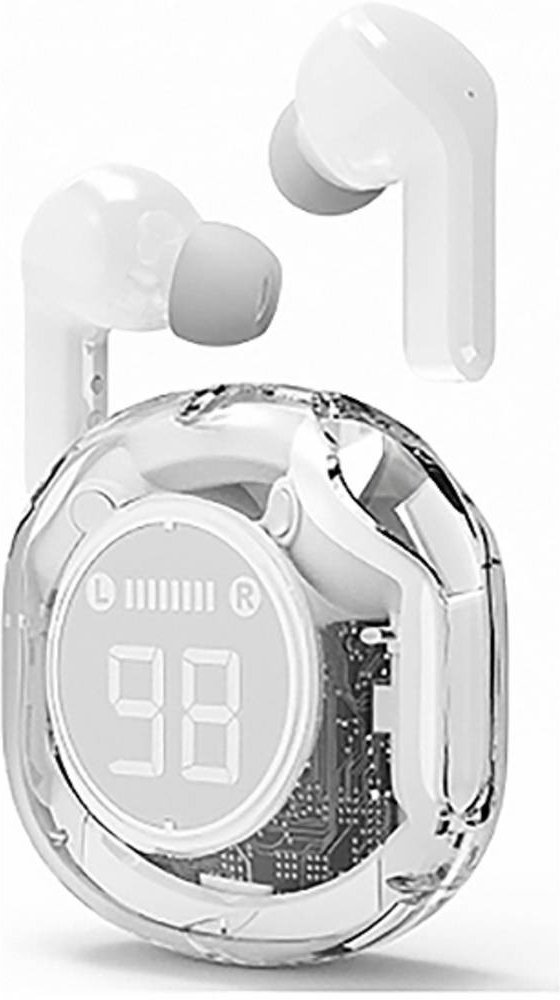 Průhledná sluchátka do uší TWS Až 6 hodin poslechu Automatické ztlumení hudby v případě příchozích hovorů LCD indikátor baterie a podsvícení měnící barvuGembird GMB Audio TWST-01-W. Typ výrobku: Dětská sluchátka s mikrofonem a s mikrofonem pro poslech hudby: Sluchátka s mikrofonem. Technologie připojení: Technologie: bezdrátová, Bluetooth. Doporučené použití: Sluchátka s mikrofonem a mikrofonem: D...