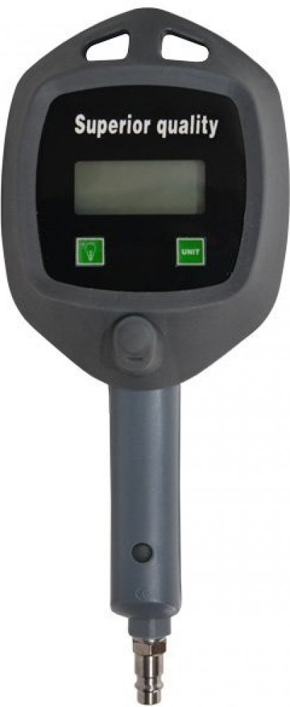 Digitální pneuhustič TG 01D Digitální pneuhustič TG 01D je pokročilý nástroj pro huštění a měření tlaku v pneumatikách, který je vhodný pro osobní i nákladní vozidla. Díky své lehkosti, nárazuvzdorné konstrukci a vysoké odolnosti je ideální pro každodenní použití v domácnostech i servisech. Tento pneuhustič je vybaven velkým a snadno čitelným displejem s možností podsvícení, což zajišťuje pohodlné použití i v méně osvětlených podmínkách. Disponuje keramickým čidlem, které umožňuje precizní měření tlaku a funkci automatického vypnutí, čímž šetří baterii. Výhody produktu: Přesné měření tlaku v rozmezí 0-12 bar (0-170 psi, 0-1200 kPa) s přesností 0,07 bar. Nárazuvzdorná a odolná konstrukce díky použití kvalitního technického plastu a pryžového krytu. Jednoduché použití díky podsvícenému displeji pro snadné čtení hodnot i za špatných světelných podmínek. Vhodný pro všechny typy pneumatik – osobní a nákladní vozidla díky širokému rozsahu tlaku. Automatické vypnutí pro úsporu energie a prodloužení životnosti baterie. Dlouhá hadice (1,8 m) pro pohodlné použití i na těžko přístupných místech. Baterie CR2450 je součástí balení, takže je pneuhustič ihned připraven k použití. Parametry: rozsah měření: 0-12 bar, 0-170 psi, 0-1200 kpapřesnost čtení: 0,07 bar připojení: vnitřní závit 1/4''rozměry: 240 x 103 x 90 mmdélka hadice: 1,8 mhmotnost (bez hadice): 380 gnapájení: 1x baterie CR2450 (součástí dodávky)