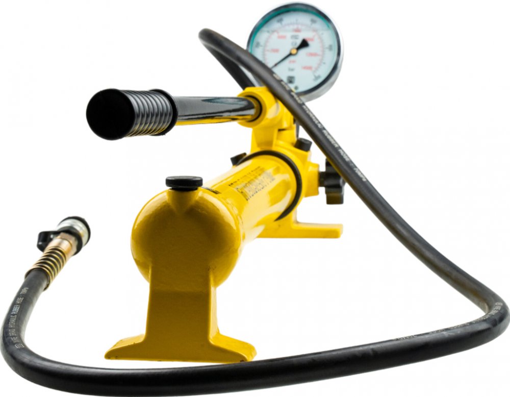 Ruční dvourychlostní hydraulická pumpa s ovládací pákou a přídavným manometrem, max. pracovní tlak 700 bar, hadice 180 cm – Genborx HHB-700B. Používá se pro pohon jednočinných hydraulických válců, různých hydraulických zařízení, rozpínáků, stahováků, hydraulických lisů, nůžek atd. Hlavní výhody: · robustní, kompaktní konstrukce · dvourychlostní funkce (rychlý pohon bez zátěže, pomalý pod zátěží) ·...