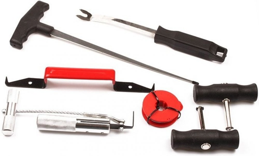 7-dílná sada nářadí a přípravků pro demontáž / vyřezávání lepených autoskel.