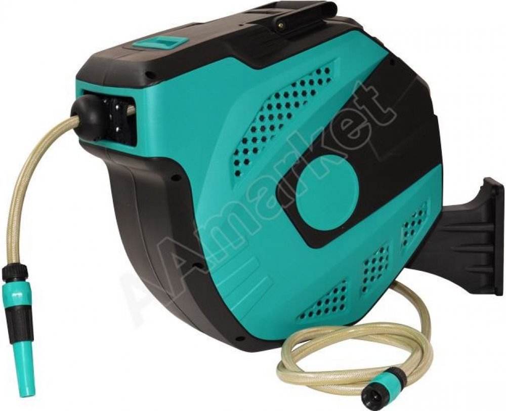Vybavený hadicí na vodu 1/2" dl. 30 m a novým systémem aretace i navíjení.