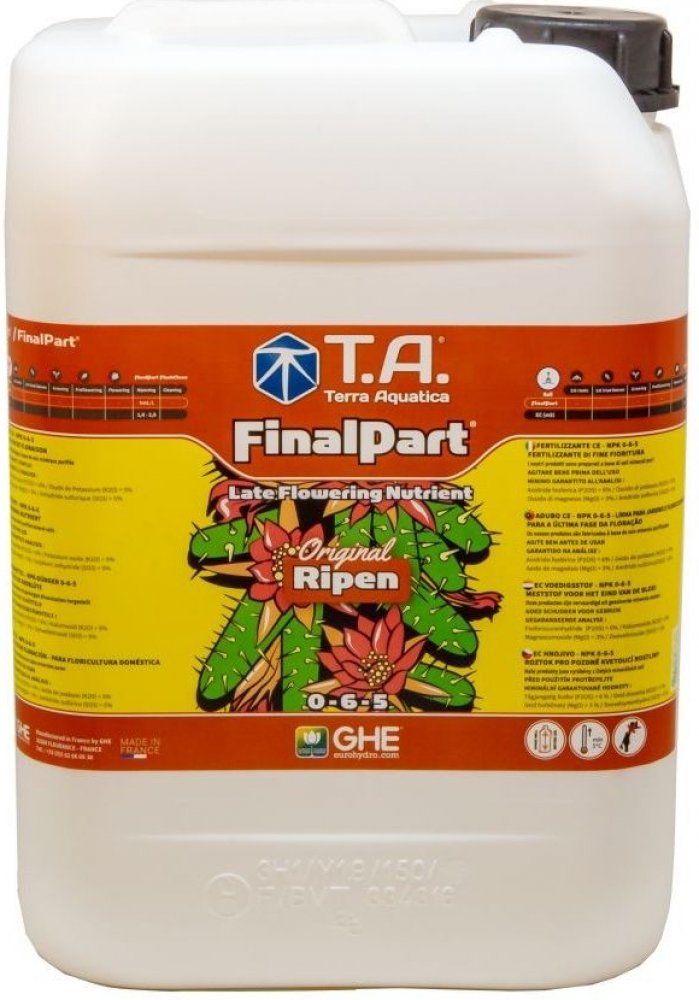 Ripen je rostlinná výživa, která obsahuje všechny potřebné živiny pro rostlinu v její poslední fázi květu. Je to směs rafinovaných minerálních solí a pufrů, která byla v laboratořích namíchaná s tou největší precizností. Ripen byl speciálně vyvinut k urychlení a podpoře procesu zrání a napomáhá zvyšovat obsah účinných látek u rostlin lékařských, aromatických a kulinářských. Pro pěstování ve sklení...