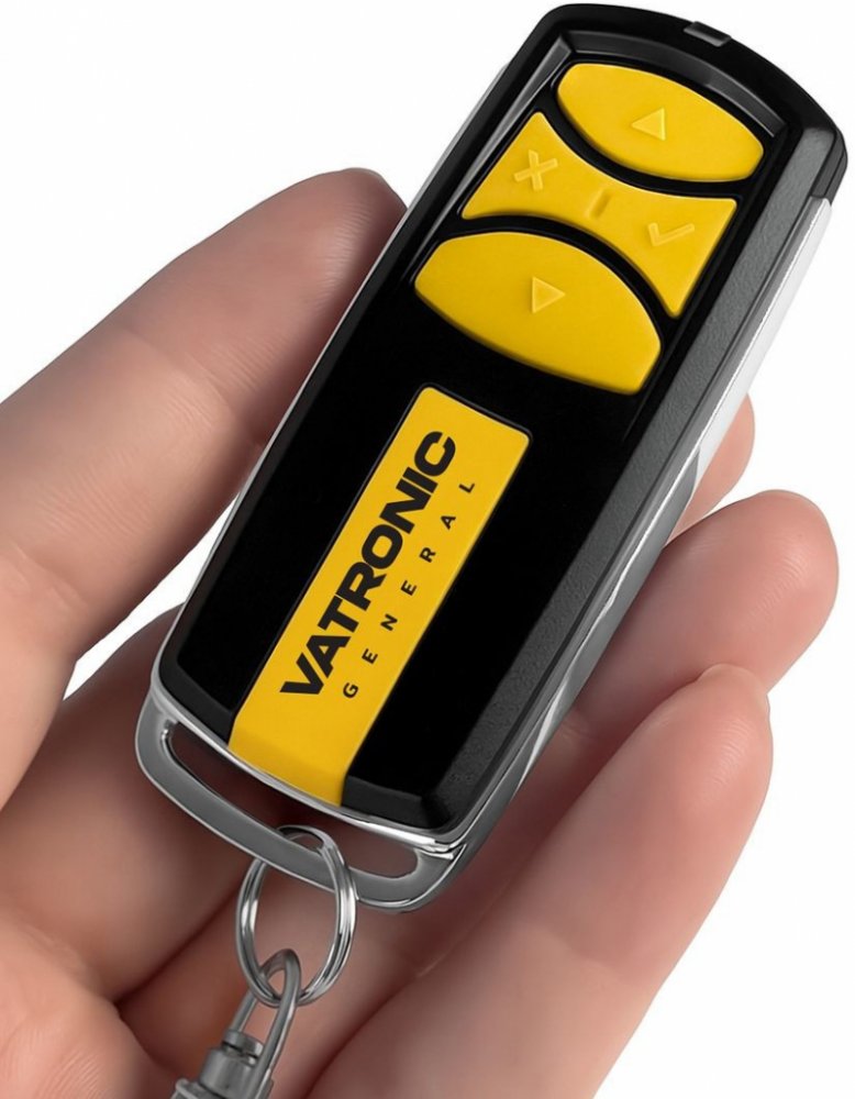 Náhradní rádiový (RF) dálkový ovladač plně kompatibilní s typem PROTECO HIT3.Dokonalá 1:1 kopie navržená a vyrobená naší firmou – má všechny funkce originálního ovladače pro tyto modely značky PROTECO:Q36A (S), Q37, Q40, Q41, Q50, Q60A (S), RX4331, RX4331L, RX4333. (Nemusí zde být uvedeny úplně všechny kompatibilní modely. Pokud si nejste jisti, sdělte nám svůj model (použijte online chat, e-mail, telefon), neprodleně zkontrolujeme a ověříme, zda je tento ovladač kompatibilní s Vaším přístrojem. Za poskytnutou informaci ručíme.) Ovladač je dodáván ve verzi značkového dálkového ovladače General VATRONIC (zobrazen vlevo). Garantujeme Vám, že dostanete ovladač, který plně nahradí Váš původní originální ovladač a bude mít naprosto všechny funkce stejné. RF dálkový ovladač General VATRONIC plně nahradí původní dálkový ovladač. Umí sloučit až 4 různé značky/výrobce a modely různých frekvencí do jednoho ovladače (podporované frekvence 270-870 MHz). Umí nejen fixní ale i plovoucí (rolling) kódy. Multi-frekvenční auto-scan ovladač, umí se učit signál. Kopírování/klonování vysílacího kódu/protokolu z originálního ovladače. Dodává se včetně 3V baterie CR2032 a kovové klíčenkové karabiny. Rozměry: 73 x 31 x 11 mm Do poznámky/komentáře v objednávce napište požadovanou barvu! Postup kopírování kódu z originálního ovladače: Stiskněte a držte tlačítko X na General VATRONIC a pak 4× stiskněte tlačítko ✓. Uvolněte obě tlačítka. Červená indikační LED na ovladači General VATRONIC krátce problikne každé dvě sekundy. Položte originální dálkový ovladač, který chcete duplikovat, před nebo vedle ovladače General VATRONIC. Na originálním dálkovém ovladači stiskněte a podržte tlačítko, které chcete duplikovat. Držte ho, dokud se na dálkovém ovladači General VATRONIC rychle nerozbliká modrá indikační LED. V tomto okamžiku stiskněte tlačítko ovladače General VATRONIC, na které chcete uložit kód. Modrá LED na ovladači se krátce rozsvítí a zhasne – tím je uložení kódu potvrzeno. ..