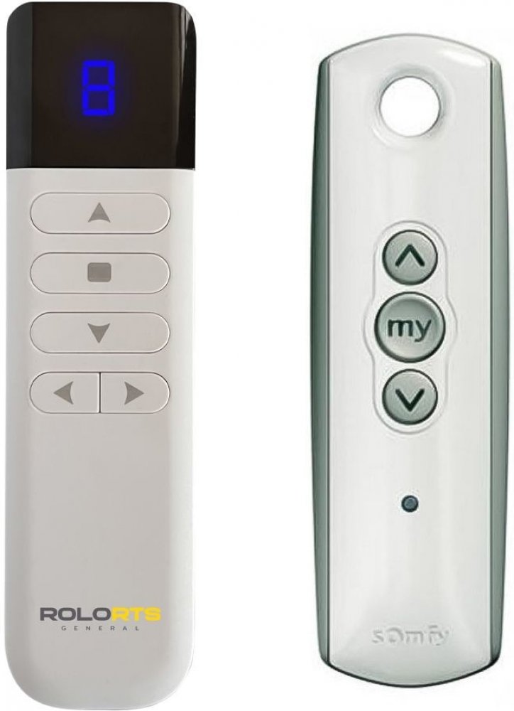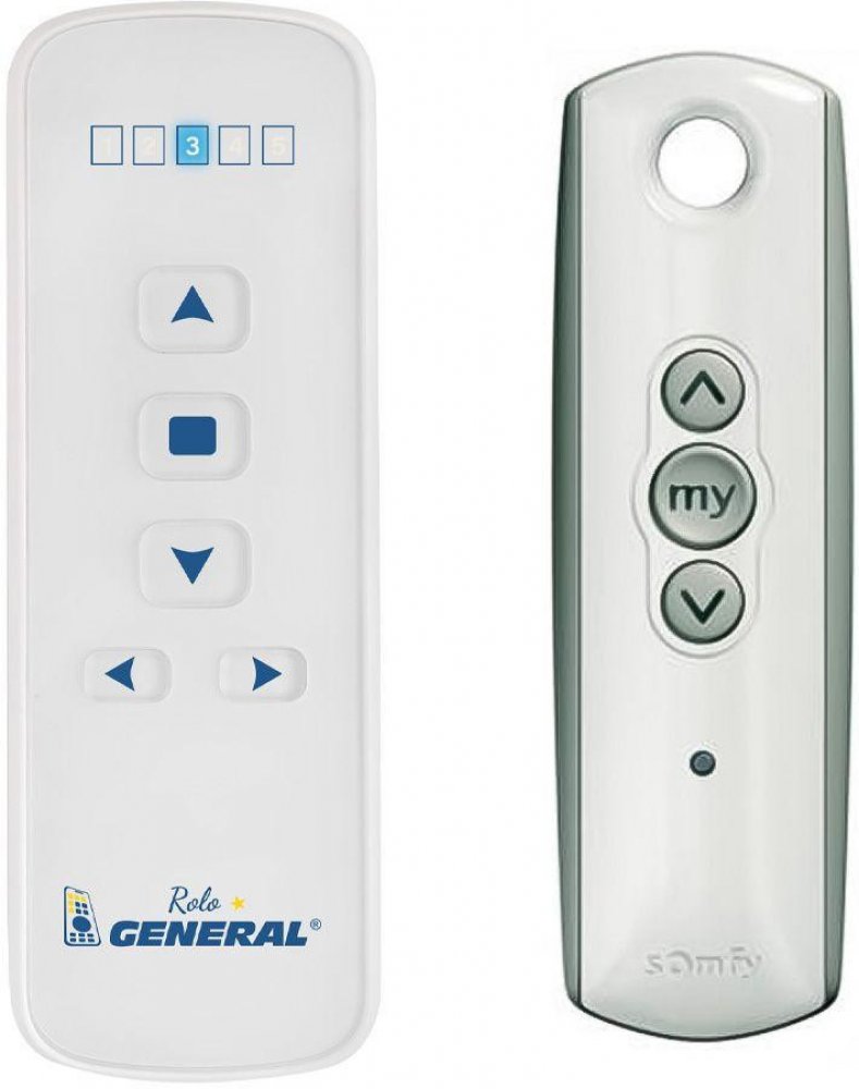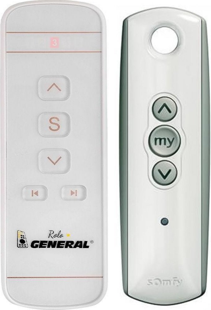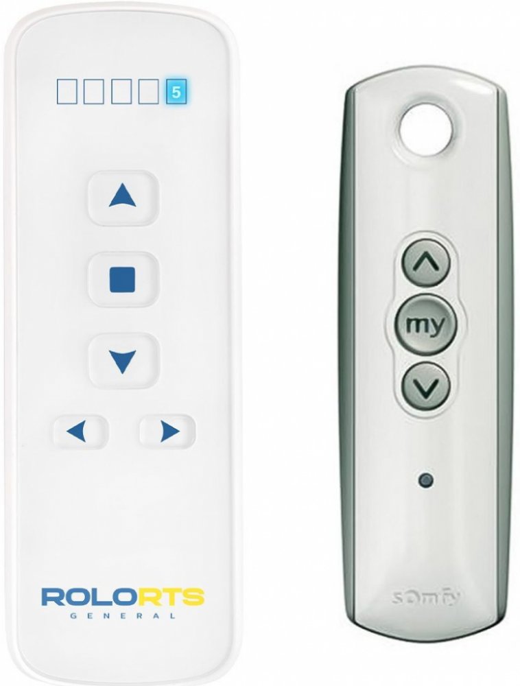 Náhradní dálkový ovladač Somfy 74300 RTS - 100% náhrada 1:1 za originální dálkový ovladač. Dálkový ovladač byl vyvinut speciálně na míru pro tyto modely značky SOMFY:TELIS 1 RTS LOUNGE, TELIS 1 RTS PATIO, TELIS 1 RTS PURE, TELIS 1 RTS SILVER, TELIS-1-RTS-LOUNGE, TELIS-1-RTS-PATIO, TELIS-1-RTS-PURE, TELIS-1-RTS-SILVER, TELIS1RTSLOUNGE, TELIS1RTSPATIO, TELIS1RTSPURE, TELIS1RTSSILVER. (Nemusí zde být uvedeny úplně všechny kompatibilní modely. Pokud si nejste jisti, sdělte nám svůj model (použijte online chat, e-mail, telefon), neprodleně zkontrolujeme a ověříme, zda je tento ovladač kompatibilní s Vaším přístrojem. Za poskytnutou informaci ručíme.) Ovladač je dodáván ve verzi značkového dálkového ovladače General ROLO (zobrazen vlevo).Ovladač General ROLO je určen k ovládání rolet, závěsů, žaluzií, markýz, a jiných SOMFY motorů v domě či bytě. Jedná se o náhradní rádiový ovladač, který dokáže nezávisle ovládat až 5 různých motorů/přístrojů nebo jejich kombinací.VLASTNOSTI A TECHNICKÉ SPECIFIKACE: Ovladač je vyroben z kombinace bílého a čirého plastu, který mu dodává jedinečný stylový vzhled Nahradí jakýkoliv SOMFY ovladač s frekvencí 433,42 MHz (RTS) Ovládá základní funkce (nahoru, dolů, sklon lamel, stop) Disponuje 5 kanály Velmi jednoduchý způsob párování, pokud máte k dispozici již spárovaný ovladač Rozměry balení: 135 x 55 x 21 mm Rozměry ovladače bez držáku: 126 x 44 x 10 mm Rozměry ovladače s držákem: 129 x 48 x 15 mmOvladač není určen k programování nebo nastavování motoru. Slouží pouze k jeho ovládání.POSTUP PÁROVÁNÍ:V případě, že již máte doma spárovaný dálkový ovladač, použijte postup párování popsaný níže. Pokud spárovaný ovladač nemáte, ovladač lze spárovat přímo s motorem bez nutnosti mít již spárovaný ovladač. Je však nutné mít přístup k napájení motoru, popřípadě pojistkové skříni. Podrobnější postupy najdete v přiloženém manuálu, nebo v OBRÁZCÍCH VÝŠE. Zmáčkněte a držte programovací tlačítko na již spárovaném ovladači, dokud motor necukne. Na ovladači G..