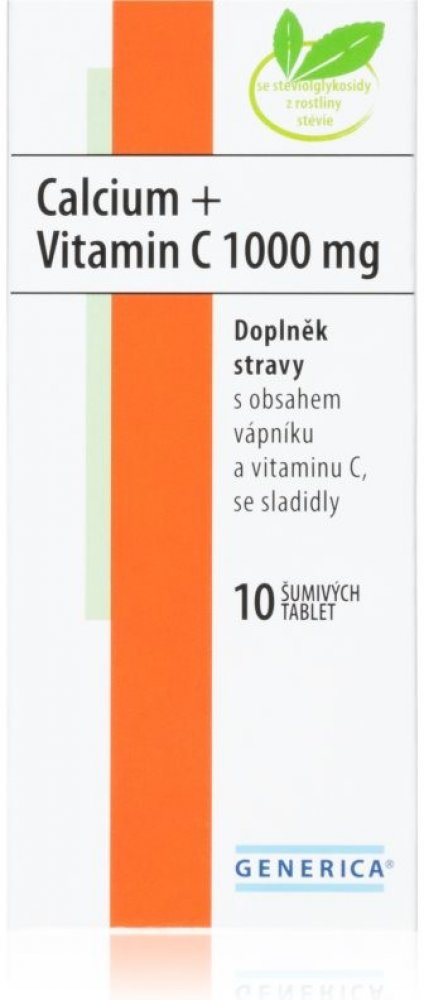 Generica 10 tbl šumivé tablety 50 ml klouby, kosti, svaly pro ženy 102 g Generica pro dospělé perorální od 12 let Pomeranč vitamín C kosti a klouby 10 1000.0 mg Kdykoliv 1 za den Nespecifikováno s vápníkem