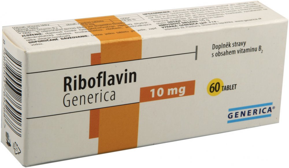 Generica 60 tbl tablety hubnutí unisex 0 g Generica pro všechny perorální od 3 let bez příchutě vitamín B2 (riboflavin) energie a koncentrace 60 10.0 mg Kdykoliv 1 za den Nespecifikováno