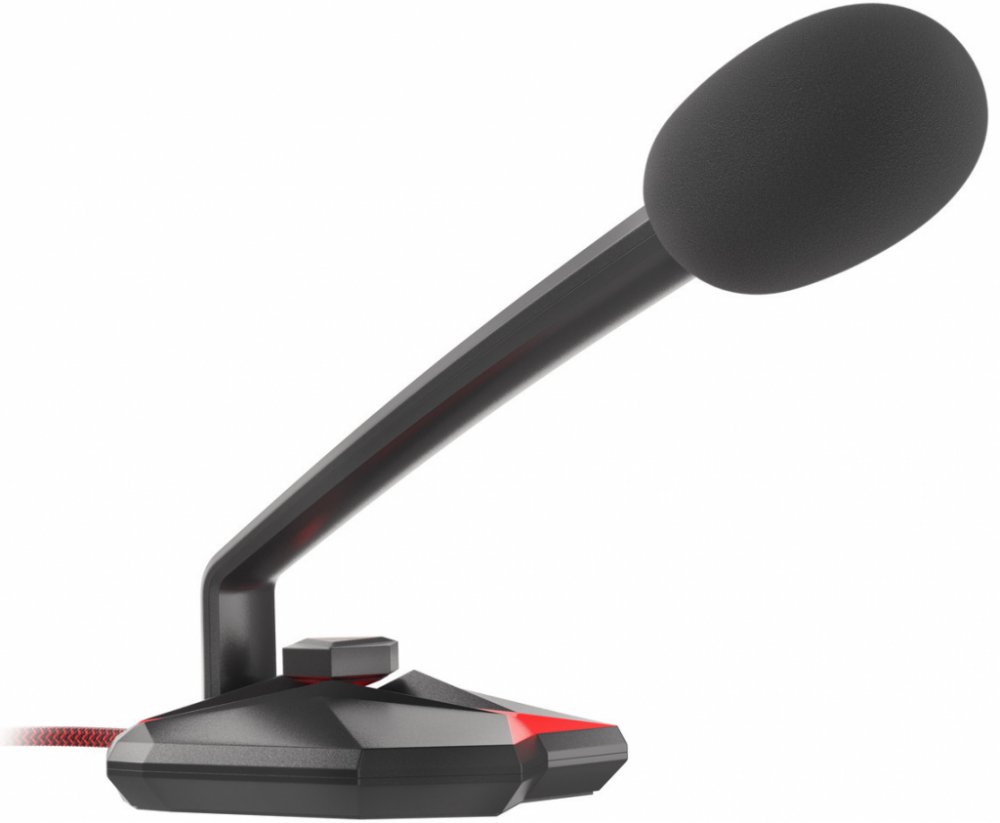 Dlouhý jeden a půl metrový kabel je vyvedený v černém a červeném opletení. Účinné LED osvětlení dodává mikrofonu jedinečný charakter, díky němuž se bude vždy dobře vyjímat na každém stole.