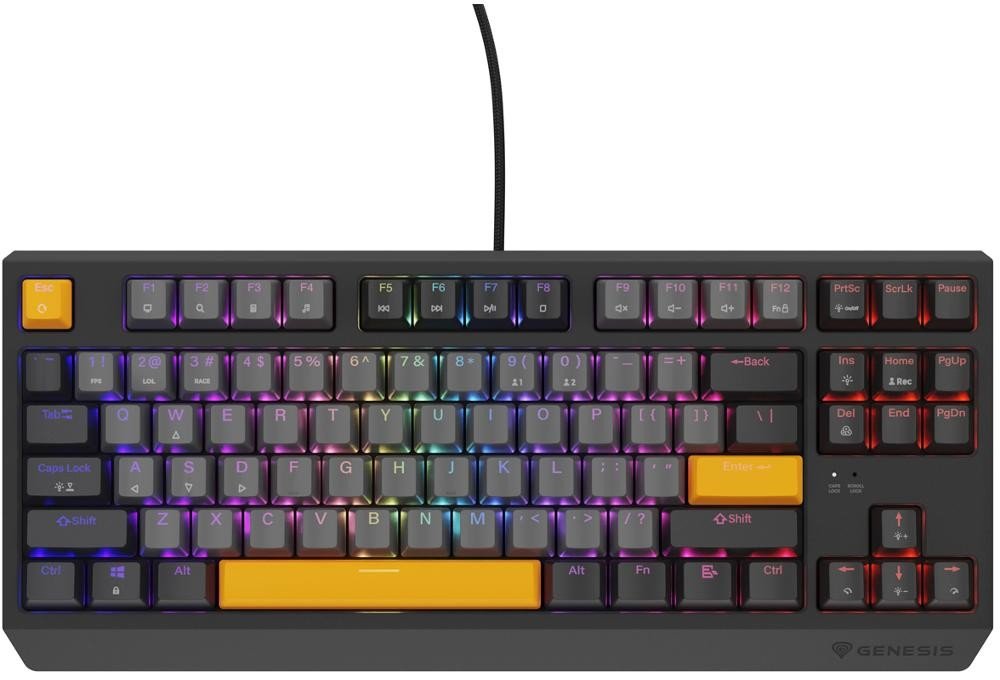 Náhoda? U klávesnice Genesis Thor 230 TKL není nic náhodné. Kromě výše zmíněného vybavení vám tento model nabídne řadu řešení, která vám hraní ještě více zpříjemní. Speciální kanál pro položení opleteného kabelu v kterémkoli ze 3 směrů, dvojité sklopné nožičky pro snadné nastavení náklonu ve 2 úrovních, funkce umožňující aktivaci funkčních kláves bez použití "FN" - to je jen malá část.