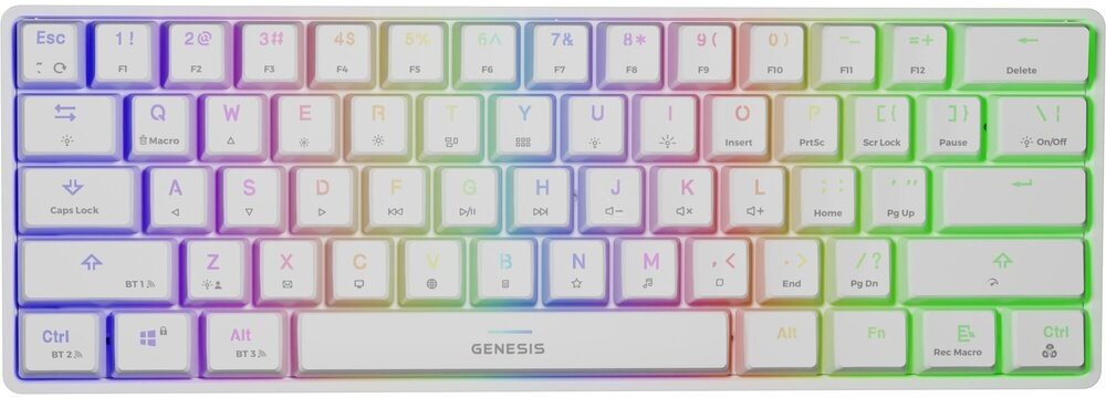 Genesis THOR 660 je bezdrátová mechanická klávesnice velikosti 60 % zkrácená o numerický blok, šipky a řadu funkčních kláves. Ultra rychlá doba odezvy spínačů The Gateron Brown přináší neuvěřitelný herní výkon a životnost až 50 milionů stisknutí, což je zárukou odolnosti na dlouhá léta. Působivé šasi v kombinaci s osvětlením RGB a efektem PRISMO dodá každé herní stanici profesionální vzhled.