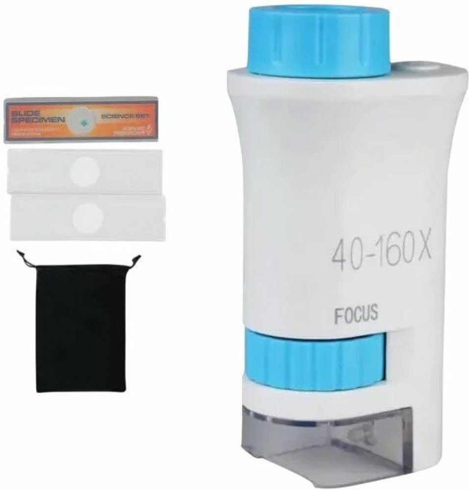 Tento přenosný kapesní mikroskop s nastavitelným zvětšením od 40x do 160x je skvělou volbou pro mladé badatele.Sada obsahuje tři popruhy připravené k pozorování, takže můžete okamžitě začít zkoumat listy, hmyz, zeleninu a květiny.Kompaktní design a vestavěné LED osvětlení z něj činí ideální nástroj pro experimenty doma i venku.Pouzdro je vyrobeno z odolného ABS plastu, bezpečného pro děti a odolného vůči každodennímu používání.Mikroskop podporuje zvědavost, podporuje učení a zaručuje hodiny fascinujících pozorování mikroskopického světa.Díky lehké a praktické konstrukci se snadno bere na výlety nebo na zahradu.Mikroskop není jen učební pomůckou, ale také inspirativní vzdělávací hračkou, která rozvíjí fantazii, soustředění a manuální zručnost.Je to vynikající vzdělávací dárek k narozeninám, začátku školního roku nebo k jakémukoli svátku.Materiál: ABS plastNapájení: 2 baterie AAA (nejsou součástí balení)Rozměry: 9,7 cm x 3,7 cm x 5,2 cmZvětšení: 40x – 160xSoučástí balení:Přenosný mikroskopSada pozorovacích sklíčekPouzdro na mikroskopNávod k použitíBezpečnostní upozorněníVýrobek je určen k pozorování drobných předmětů (např. rostliny, hmyz, minerály, povrchy).Nikdy nemiřte mikroskopem do očí lidí ani zvířat – hrozí poškození zraku.Nedívejte se mikroskopem do Slunce ani jiných silných světelných zdrojů.Výrobek není hračka. Doporučený věk: 8+. Děti mohou výrobek používat pouze pod dohledem dospělé osoby.Sada obsahuje malé části (krycí sklíčka, nástroje, nádobky) – hrozí nebezpečí vdechnutí nebo spolknutí.Manipulační nástroje (pinzeta, špachtle apod.) nejsou určeny ke kontaktu s tělem.Vzorky určené k pozorování neochutnávejte ani nevkládejte do úst.Mikroskop ani příslušenství nevystavujte vodě, vlhkosti ani vysokým teplotám.Nepoužívejte poškozený výrobek. V případě závady jej dále nepoužívejte.Uchovávejte mimo dosah malých dětí, pokud není používán pod dohledem.