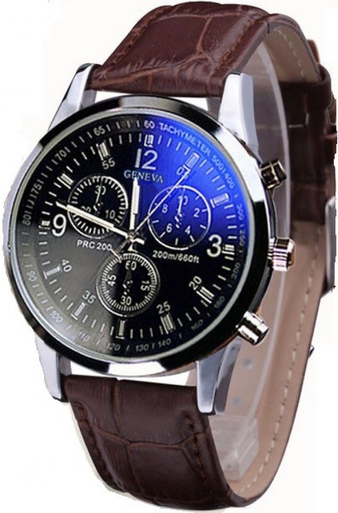 Geneva analogové kůže elegantní pánské pro potápění (100+ m) ocel 200.0 m 24 cm kulaté hnědá černá na přezku 4 cm na ruku s arabskými číslicemi stříbrná ocel 3