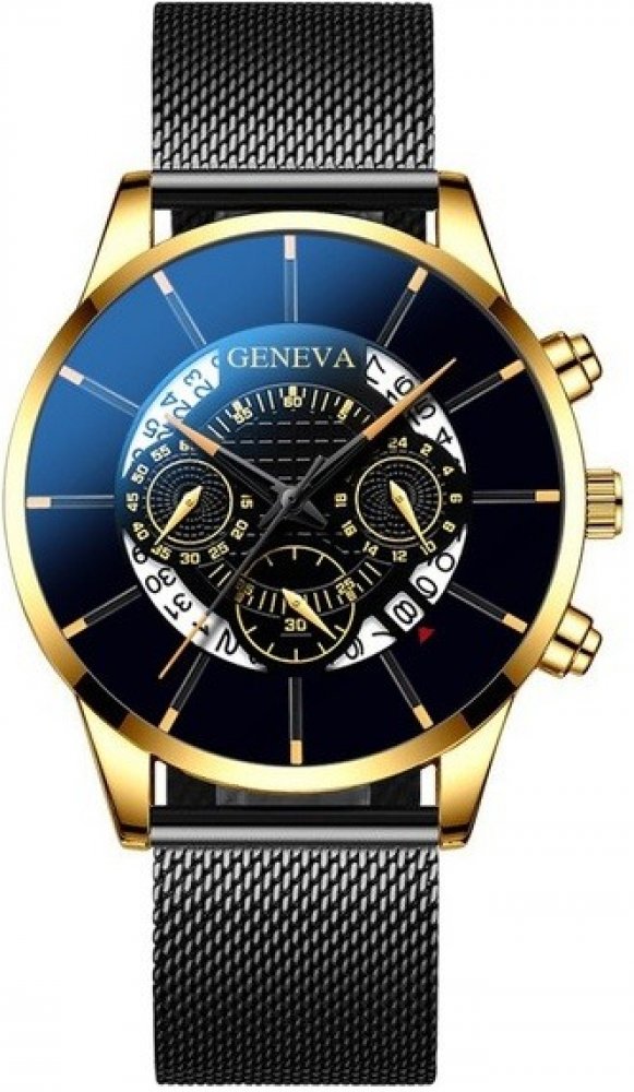 Geneva analogové ocel elegantní pánské kov 23.5 cm bez osazení kulaté černá černá 1.9 cm na ruku bez číslic černá ocel