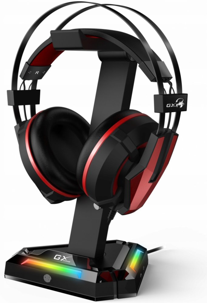 Genius GX-UH100, Stojan, na herní headset s USB HUBem, RGB podsvícení, 2x USB, 2x USB-C, černý
