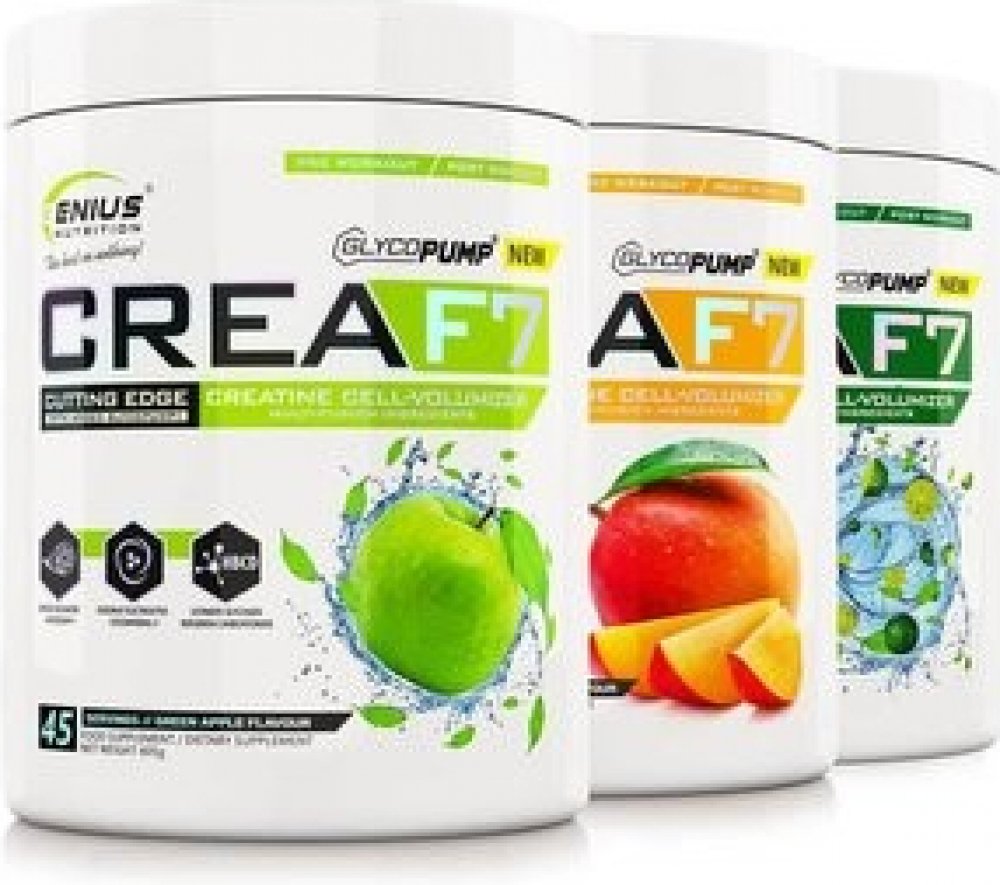 CREA-F7 je špičkový kreatinový buněčný volumizér vyrobený z multifúzních složek nové generace, který maximalizuje svalový růst, dodává svalovou pumpu a zvětšuje objem svalových buněk. CREA-F7 obsahuje směs šesti typů kreatinu s přidaným GlycoPump®, CocoMineral® a HBCD.