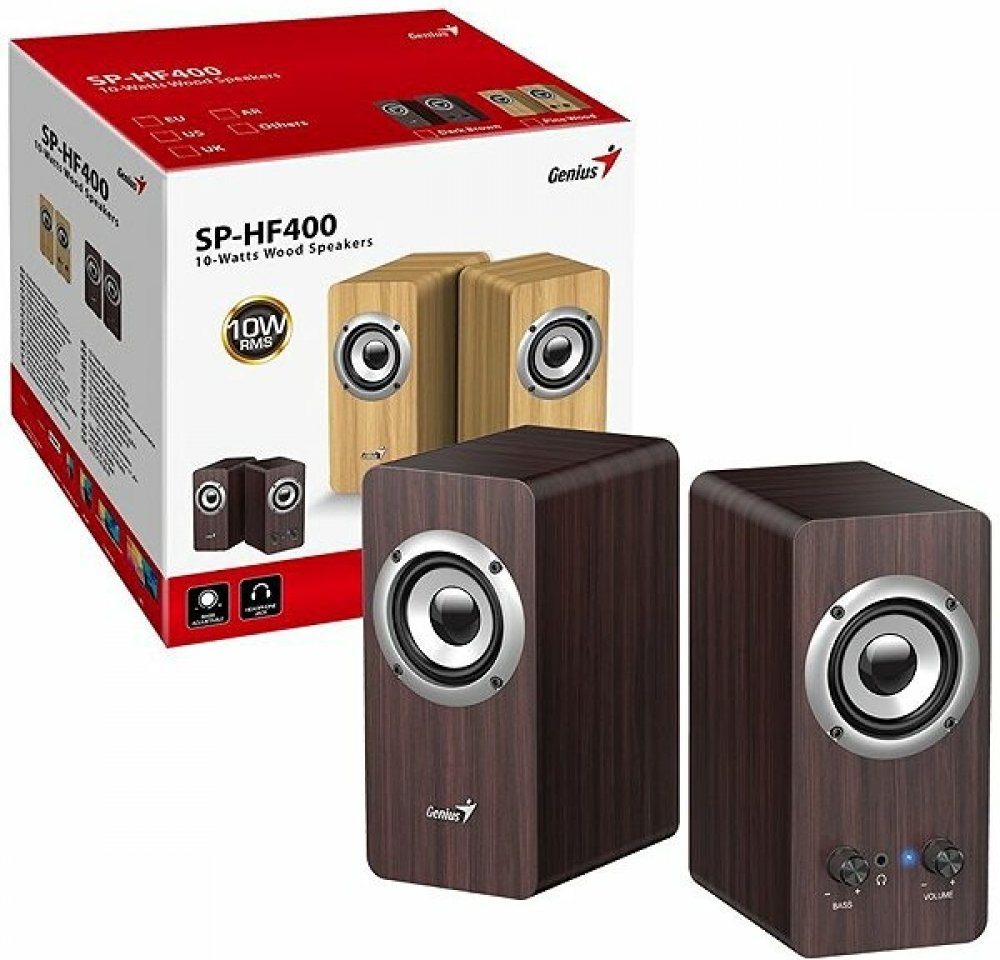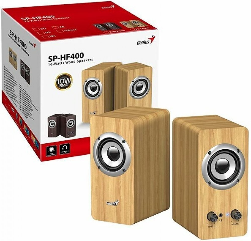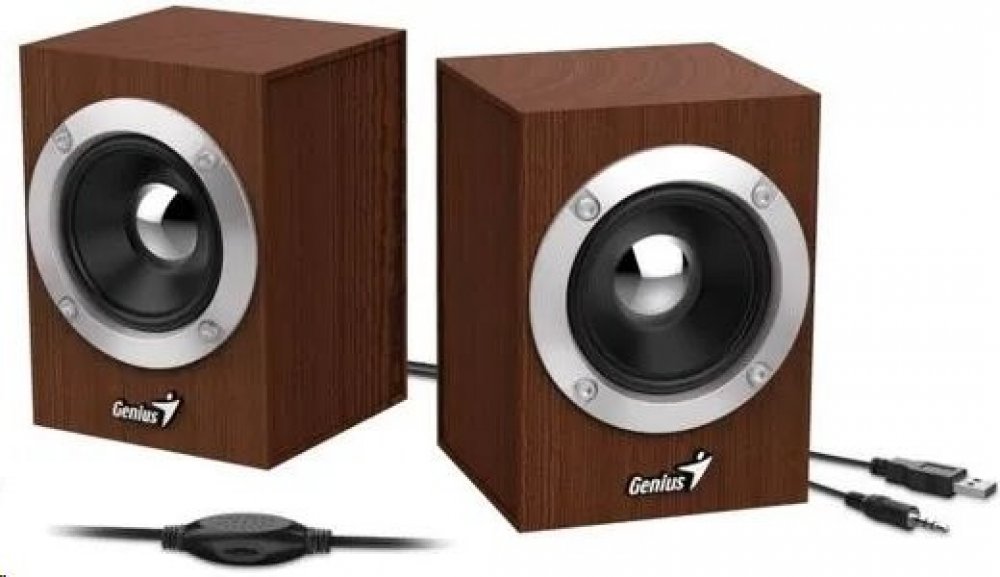 Dřevěné multimediální reproduktory v konfiguraci 2.0 s celkovým výkonem 6 W poskytují kvalitní a nezkreslený stereofonní zvuk. Ovládání hlasitosti je umístěno na 1,2 m dlouhém kabelu. Připojení lze jednoduše realizovat skrze 3,5 mm konektor. K napájení slouží USB port.