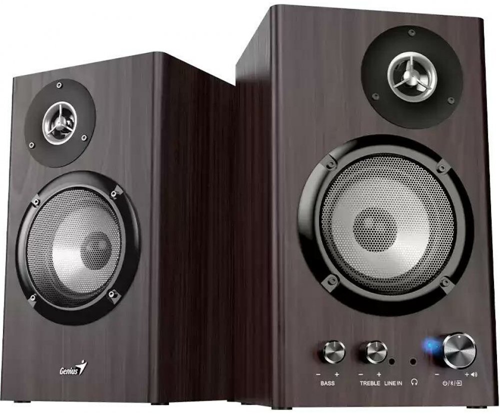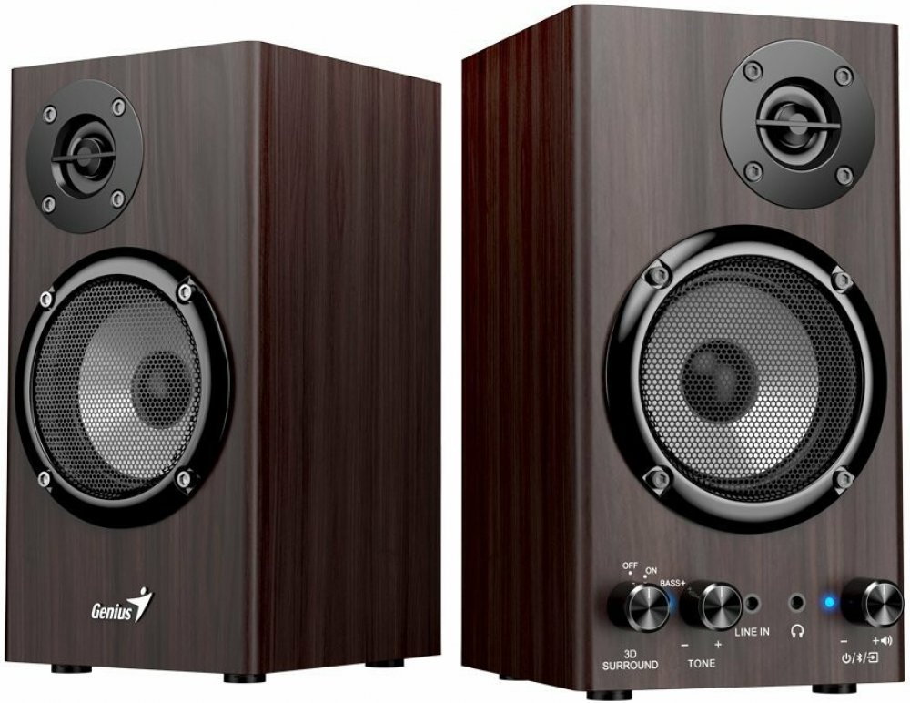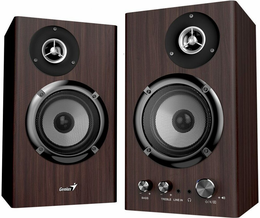 Genius SP-HF1812BT Reproduktory, 2.0, 50W, Bluetooth 5.3, 3,5mm jack, dřevěné, tmavě hnědé