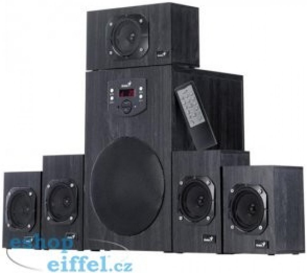 Elegantní systém reproduktorů v konfiguraci 5.1 nabízí celkový výkon 125 W. Sestava v dřevěném provedení tvořena kvalitním subwooferem s 6" reproduktorem, který disponuje integrovaným zesilovačem a výkonem 45 W. Subwoofer je doplněn pěti satelity, kdy každý disponuje výkonem 16 W. Součástí balení je napájecí adaptér 100-240 V.