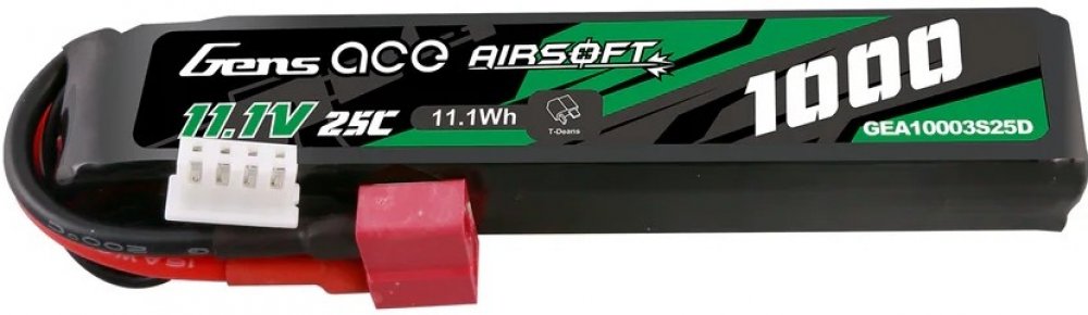 Pokud hledáte malou airsoftovou baterii s pořádnou porcí energie pro vaši zbraň, právě jste ji našli. Gens ACE současně patří mezi absolutní špičku v oblasti baterií pro FPV drony, RC modely i airsoftové zbraně. Jejich Li-Pol baterie poskytuje lepší energetickou účinnost a vyšší výkon v porovnání s tradičními NiMH bateriemi, zároveň je daleko menší než Li-Ion baterie a snáze ji umístíte do zbraně, aniž byste museli mít baterii ve venkovních kapsách nebo imitačních PEQ boxech, takže si zachováte realistický vzhled zbraně (povinnost pro každého Mil-Sim operátora a Reenactora). Díky Li-Pol bateriím také získáte rychlejší odezvu spouště, vyšší kadenci a delší provoz i v chladném počasí. Baterie je vybavena konektorem T-Dean a balančním vyrovnávacím konektorem pro bezpečné a efektivní nabíjení. Všechny Gens ACE baterie jsou vybaveny kvalitními články, které zajišťují stabilní a vysoký výkon.