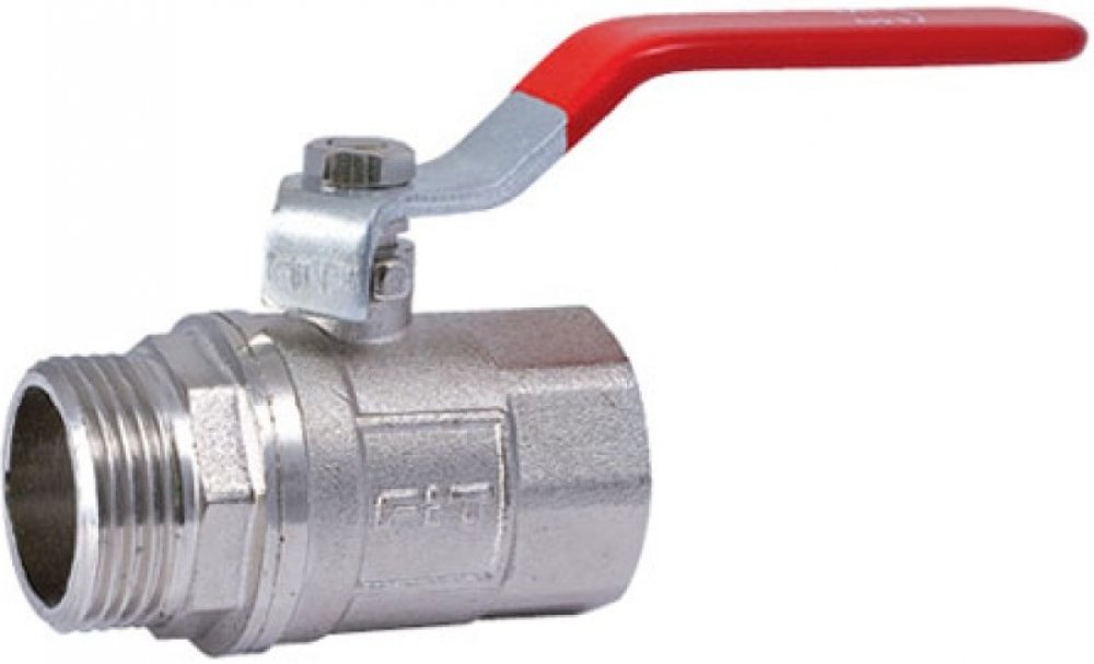 Kulový kohout s vnitřním a vnějším závitem, ovládání páčkou.Tělo, závitová část a koule z mosazi MS 58, ovládací páčka v červené barvě. Utěsnění hřídele pomocí ucpávky. Určeno zejména pro rozvody vody v průmyslu, řemeslnictví a domácnostech.