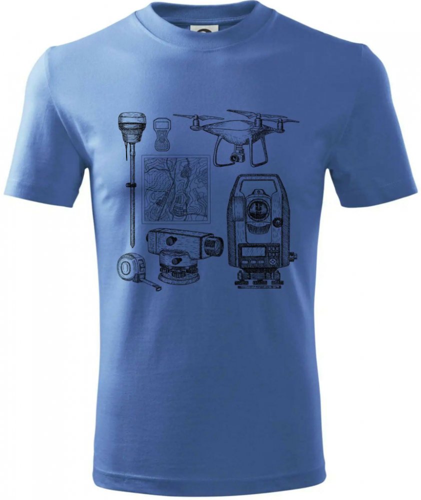 Geodet teodolit dron tričko dětské bavlněné azurově modrá