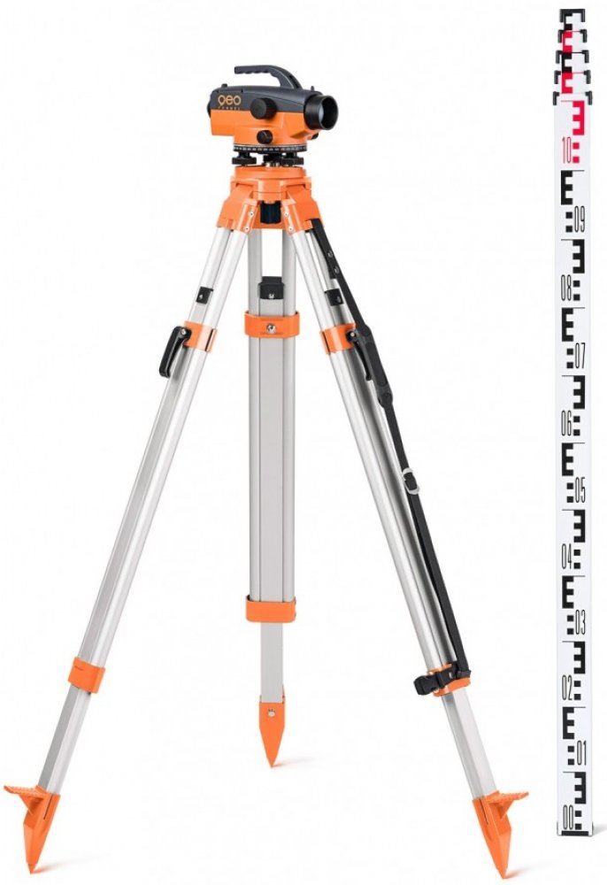 Nivelační sada GFN 1 se skládá z nivelačního přístroje GFN 1, hliníkového stavebního stativu N 147 a 5m teleskopické nivelační latě NL 15-0 s obalem.
