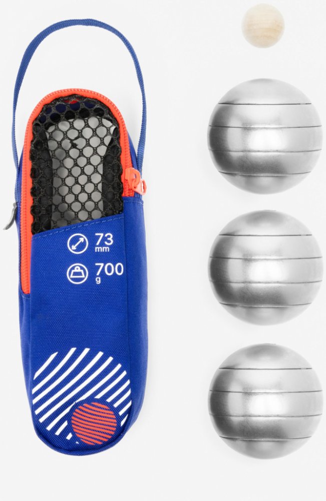 Objevte hru pétanque pomocí této sady 3 ks koulí, 1 košonku a obalu. Určeno na hru na měkkém povrchu (písek, tráva, ...). Tato sada obsahuje 3 ks koulí, 1 košonek a obal. Jedná se o ideální sadu na vaše začátky s hrou pétanque. A co když vyhrajete s plným počtem bodů? Průměr 73 mm a hmotnost 700 g.|Pozinkování povrchu brání korozi. |3 koule na pétanque,