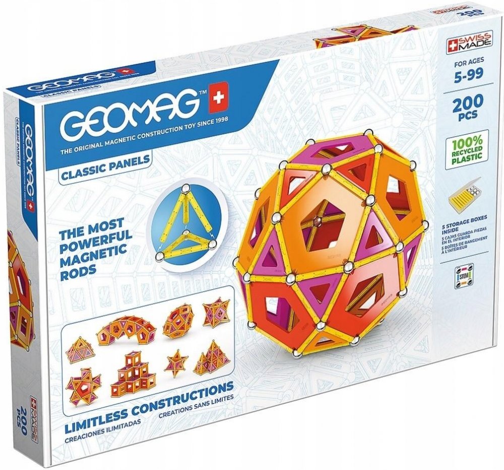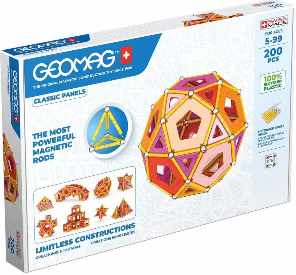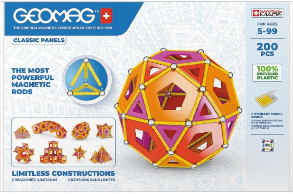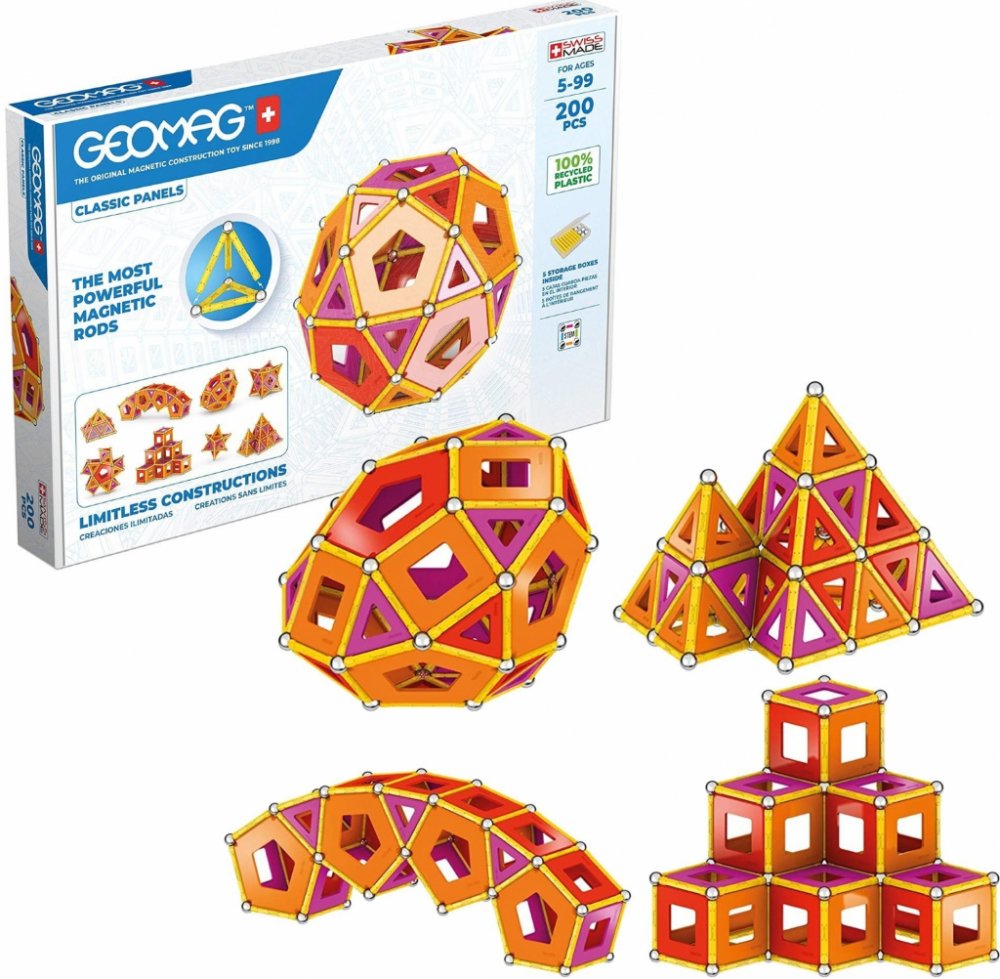 Geomag Classic Panels - ekologická konstrukční barevná magnetická 2D / 3D kvalitní stavebnice z kovu a plastu. 200 dílků v teplých odstínech.