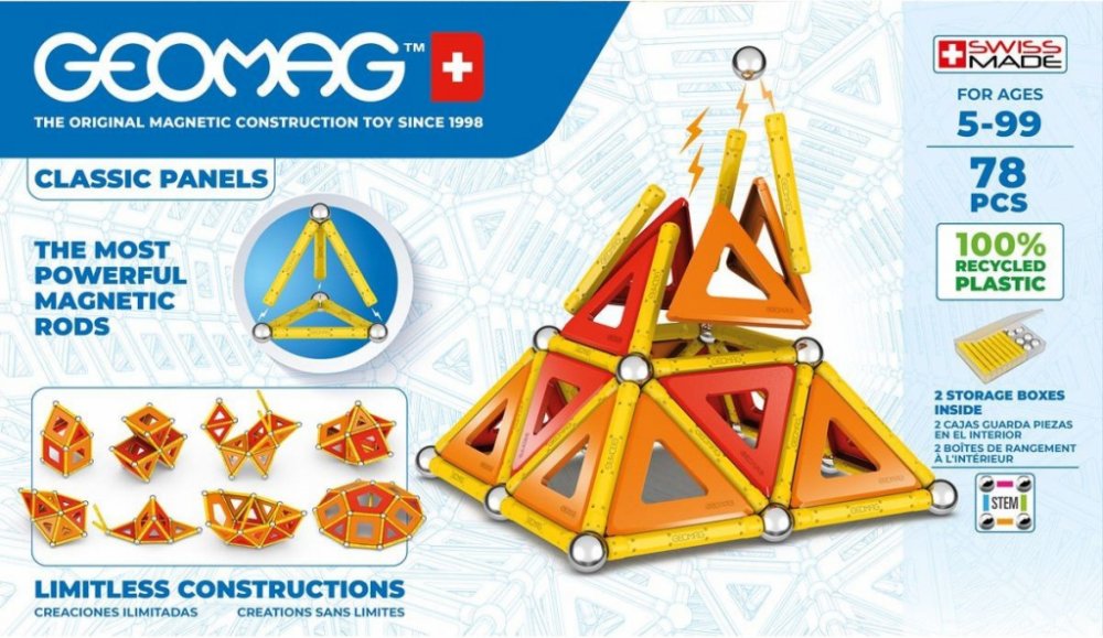 Magnetická síla a geometrické tvary, to je řada stavebnic Classic Panels. Díky plastovým výplním bude vaše stavba ještě pevnější a stabilnější. Tak vzhůru za kreativní výzvou. Stavebnice je vhodná pro děti od 5