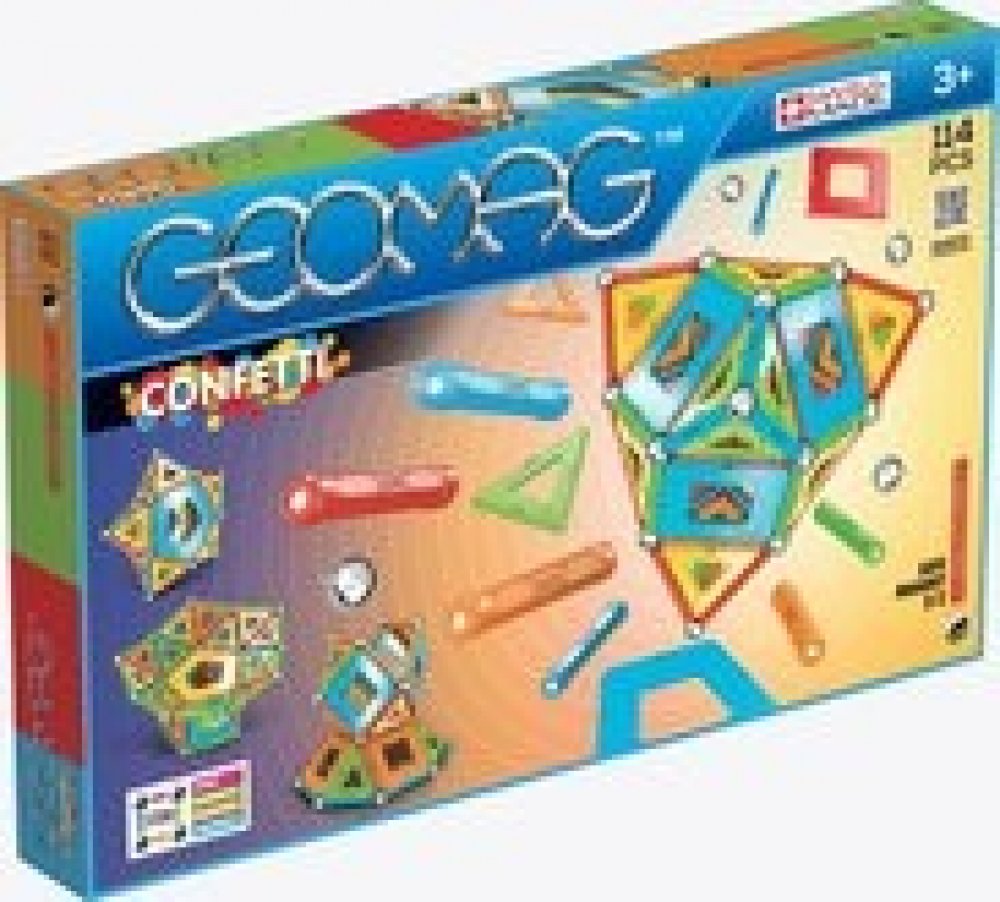 GEOMAG - Confetti - ponoř se do světa barev s novou kombinačí holčičích a kličičích odstrínů a barevných výplní. Stavebnice obsahuje celkem 114 dílků. Určena je pro děti od 3 let.