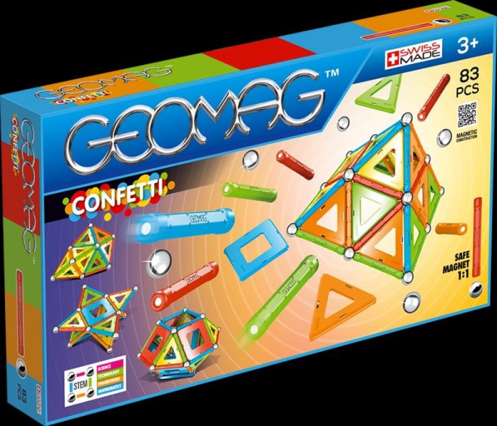 Stavebnice Geomag Confetti 83 Geomag je důmyslný, ale jednoduchý konstrukční systém s magnetickými tyčinkami a ocelovými kuličkami, který umožňuje vytvářet nekonečné množství figurek a trojrozměrných staveb. Tato super zábavná hračka stimuluje prostorový postřeh, rozvíjí stavební samorost a podněcuje kreativitu a logické myšlení. Maximální síla magnetů zajišťuje, že jsou možné i ty nejsložitější k...