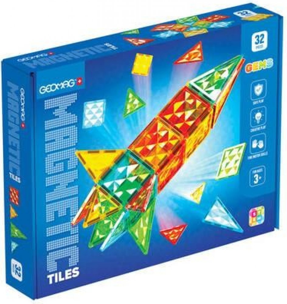Geomag Gems Rocket 32 magnetických dlaždicGeomag Gems Rocket 32 je sada magnetických destiček, která umožňuje dětem kreativně stavět stavby inspirované vesmírnými dobrodružstvími. Díky 32 barevným dílkům s lesklou fasetovou strukturou ve tvaru trojúhelníku a čtverce mohou malí konstruktéři stavět působivé rakety, vesmírné lodě a mnoho dalších prostorových útvarů. Každý dílek se spojuje pomocí magn...