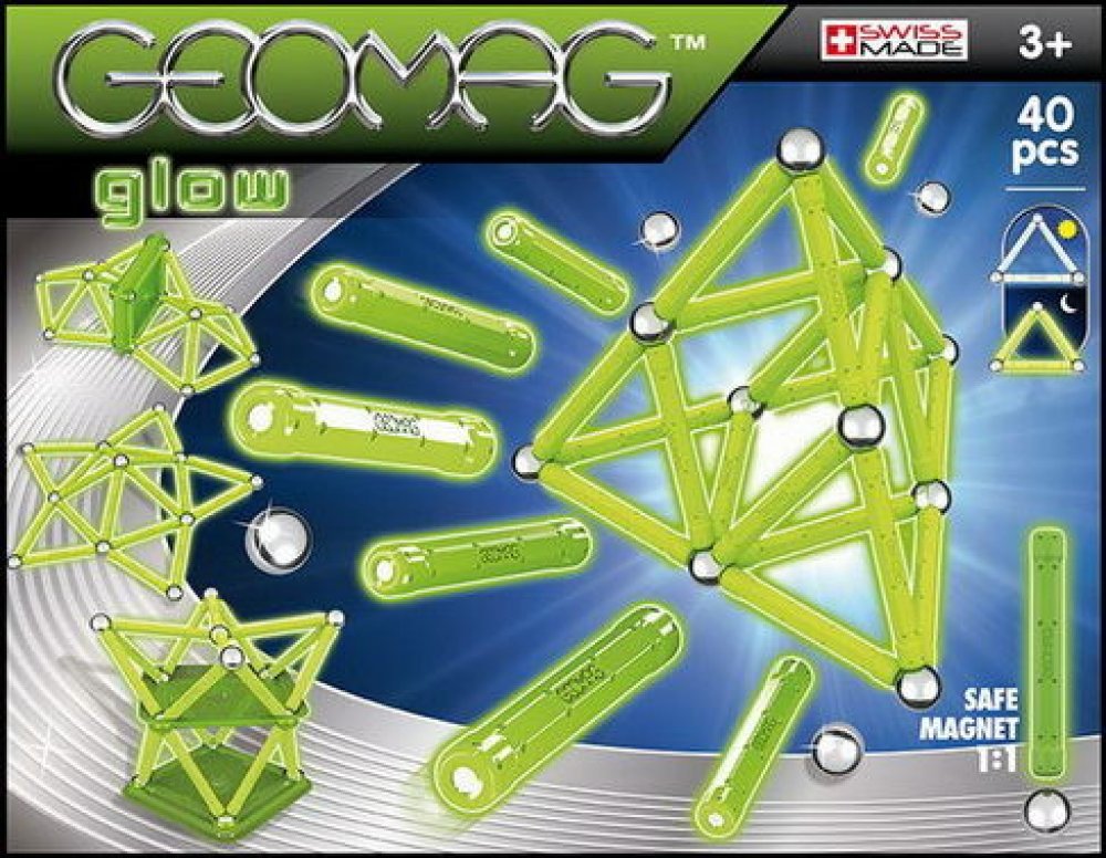 - Geomag Glow je řada, která díky expozici září ve tmě.
