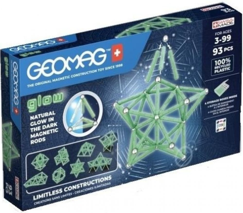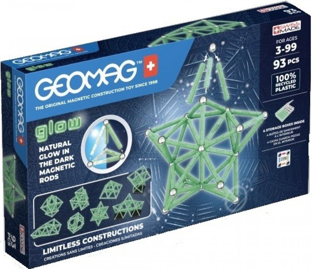 Největší magnetická stavebnice z řady Glow. Potahy tyček po nasvícení září ve tmě.