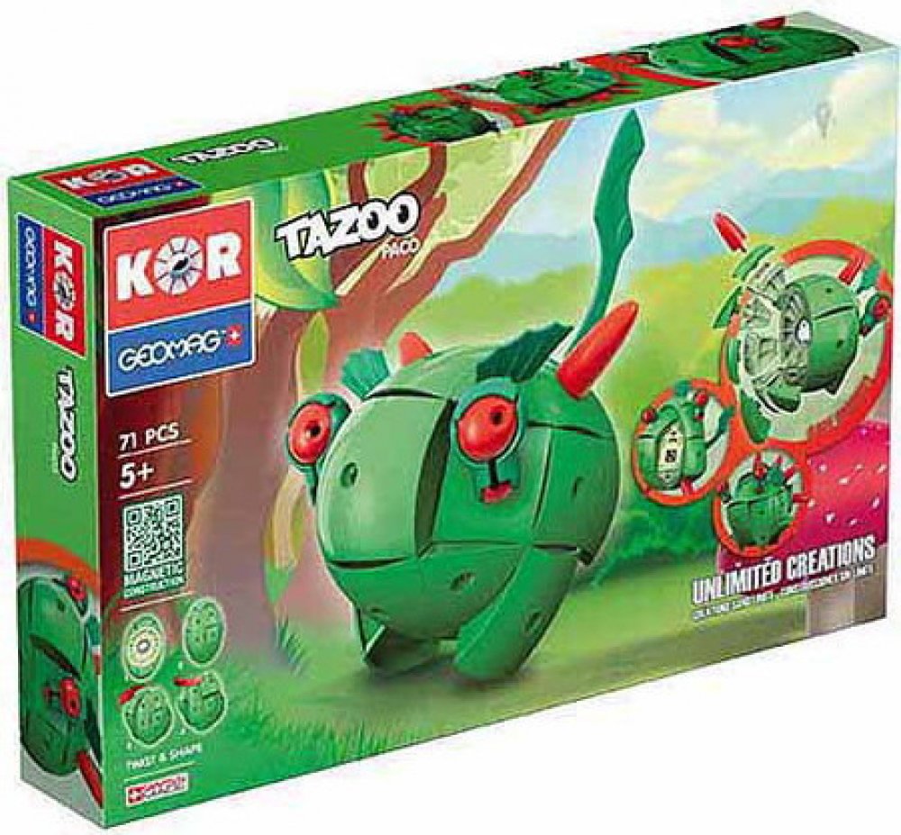 Geomag KOR je jedinečná konstrukčně-transformační magnetická stavebnice. Zbrusu nový magnetický systém vám umožní zažít různé herní činnosti v jedné hračce. Základem Geomagu KOR je patentovaný systém složený z 26 magnetických prvků volně rotujících kolem kovové koule. Složením těchto 26 prvků, kovové koule a dílků pláště dostaneme eliptický útvar - "vejce". Kroucením můžete vytvářet neomezené kreace. Nakonec se přidává specifické příslušenství které vytváří charakter výtvoru a je rozděleno do dvou hlavních skupin: "Proteon" a "Tazoo".